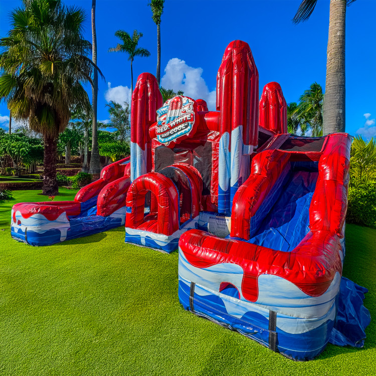Red, White, and Blue dual slide combo is perfect for all your party needs, this unit can be used wet or dry!